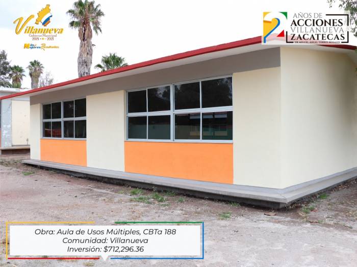 Villanueva avanza con más y mejores resultados. Construcción de Aula Usos Múltiples en Centro de Bachillerato Tecnológico agropecuario no. 188, por... [continúa]