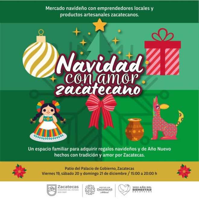 Gobierno de Zacatecas invita al Mercadito “Navidad con Amor Zacatecano” en Palacio de Gobierno