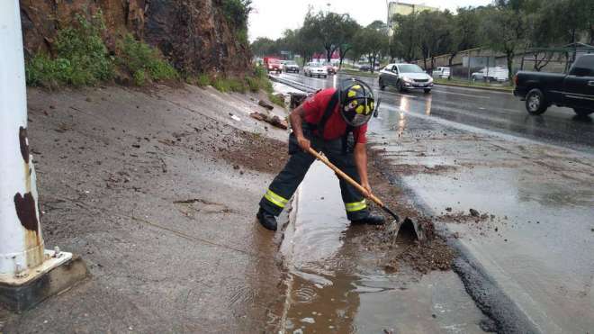 Atienden daños provocados por tromba caída en la capital