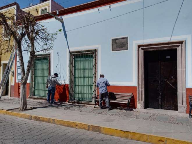 Personal de Mantenimiento de Edificios realiza trabajos de mejoramiento en la fachada de la Casa Museo Ramón López Velarde, los cuales consisten en re... [continúa]