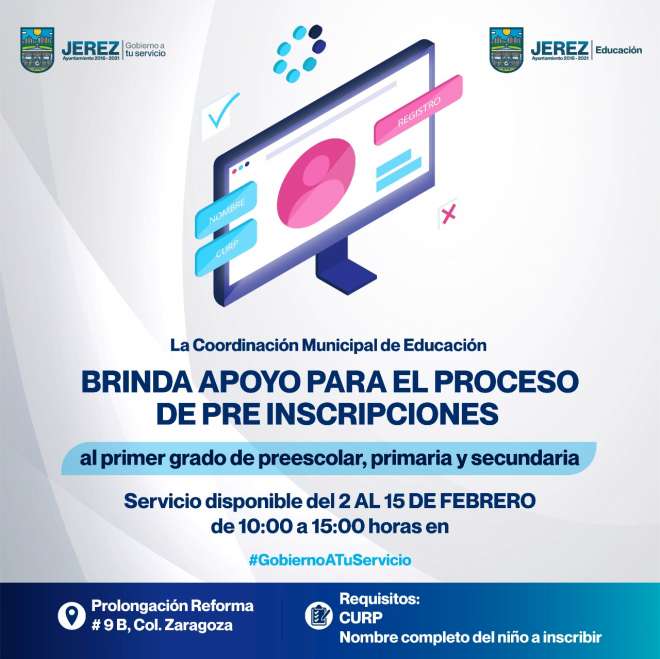 La Coordinación Municipal de Educación brinda su apoyo a todos los padres y madres de familia que así lo requieran para el proceso de pre inscripcione... [continúa]