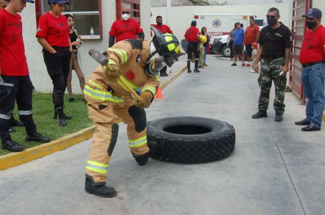 Muestran sus habilidades bomberos en su día