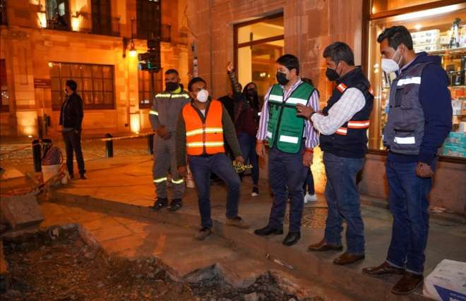 Arranca Jorge Miranda jornada de bacheo nocturno en el centro histórico