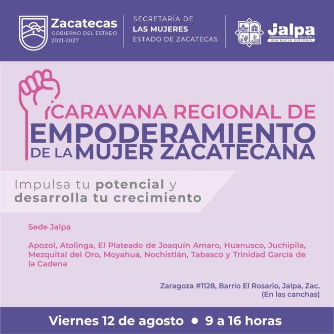 Llevarán a Jalpa la Caravana de Empoderamiento de la Mujer Zacatecana