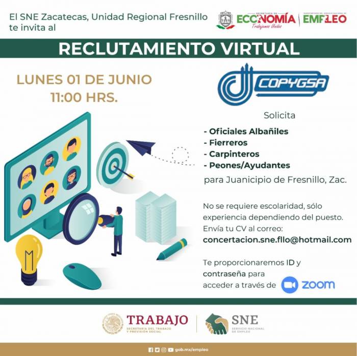 Zacatecas, Zac.- Este lunes 1 de junio, a las 11:00 horas, el Servicio Nacional del Empleo (SNE) Zacatecas invita a la población que busca trabajo ... [continúa]
