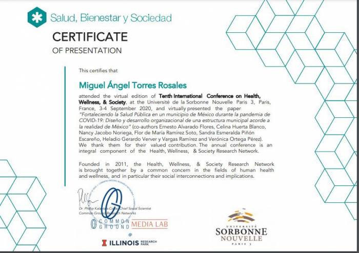 Recibe Villanueva, reconocimiento en foro internacional de salud celebrado en Francia