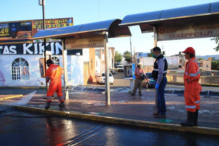 SANITIZACIÓN CONSTANTE A LOS PARADEROS DE AUTOBUSES Y ZONAS HOSPITALARIAS.